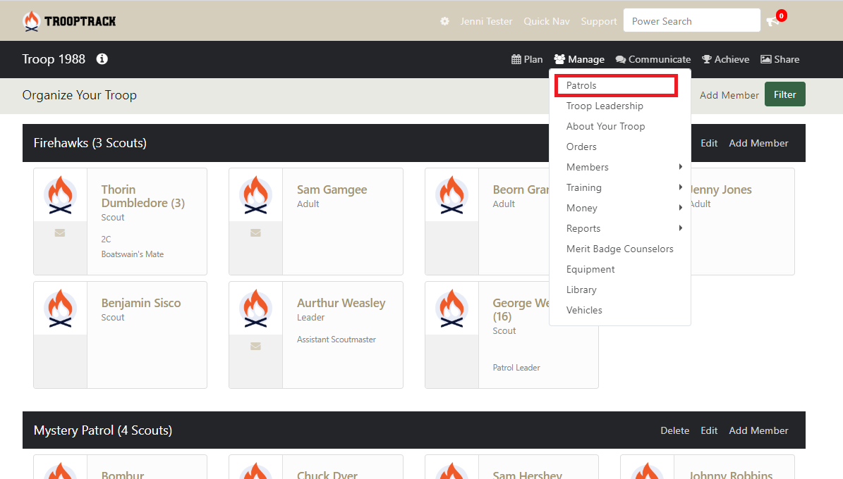 How to Get There Just click the "Manage" button, then "Units", as shown below. 100% • 75% • 50% Manage Patrols and Dens by Dragging People Around To move a user into a patrol, just drag them from their current position into the patrol box you want ...